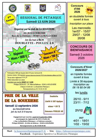 Lundi 19 janvier 2026 - Concours en triplette ouvert à tous - Complet